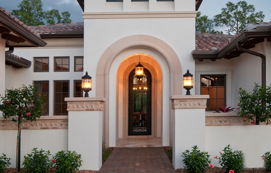 With a side-entry garage, the Girona’s Mediterranean look is showcased, as is the courtyard at the entry.