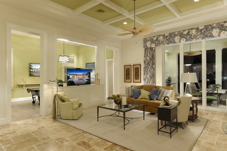 Most people can admit to needing more space in their home, but our clients are very specific about the extra space they need, making room for game rooms, theater rooms, wine rooms, or even extra rooms to have a space for the children and grandchildren when they come for a visit. The Delfina model home at The Founders Club offers a game room as an option, while the Chelston in Old Naples has a second-story loft for additional space. If work is on their agenda, our clients also enjoy incorporating a study or home office into their space, like the one found in our Capriano model home in Mediterra Naples.
